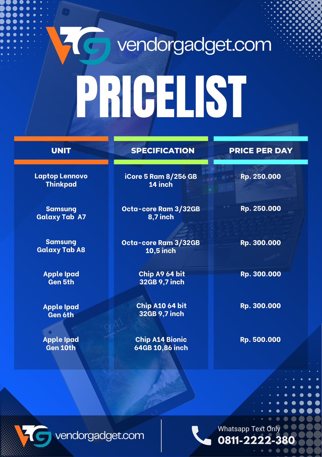 VENDOR GADGET RENTAL TABLET, IPHONE & IPAD